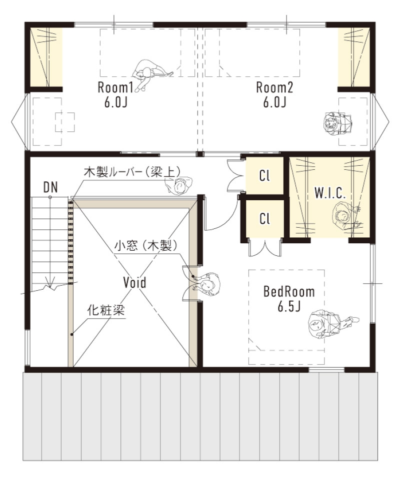 親しい人たちを招いてお茶会や食事会など、さまざまなシーンに対応可能なクラシカルなスタイルの家です。テラスによって室内外がゆるやかにつながり、アイデア次第で色々な楽しみ方が可能に。開放的な空間はコミュニティの中心になることが期待できます。軒は出さずにすっきりとした三角屋根と南面に大きく開放された窓が特徴です。奥行のあるリビング前のテラスが内と外をゆるやかにつなぎます。